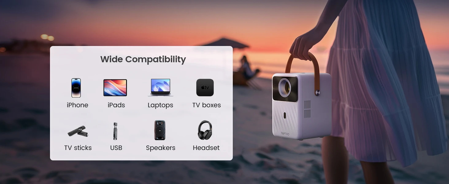 ?Multi-interface Portable Video Projector & Technical Support?The 1080P portable projector is equipped with HDMI/USB/3.5mm audio ports, compatible with laptops/TV sticks/Chrome Book/DVD players/PS4/PS5/TV Box/X-Box/PC, etc. It is the best companion for home entertainment and friends gathering. TOPTRO offers 1 years of maintenance, If you have any questions about Video Projector, please refer to the after-sales service in the user manual