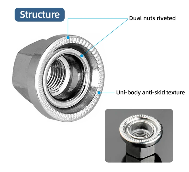 - Estructura: 2 tuercas remachadas para un bloqueo firme y antideslizante.