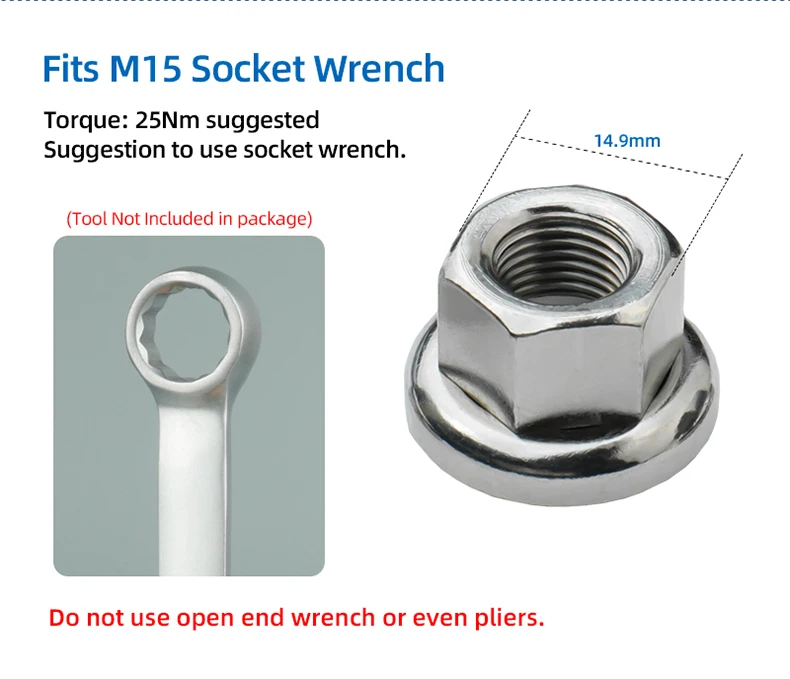 3. El servicio de tuercas de cubo requiere un alto par.Sugerencia de utilizar una llave de tubo.No utilice llaves de extremo abierto ni siquiera unos alicates.